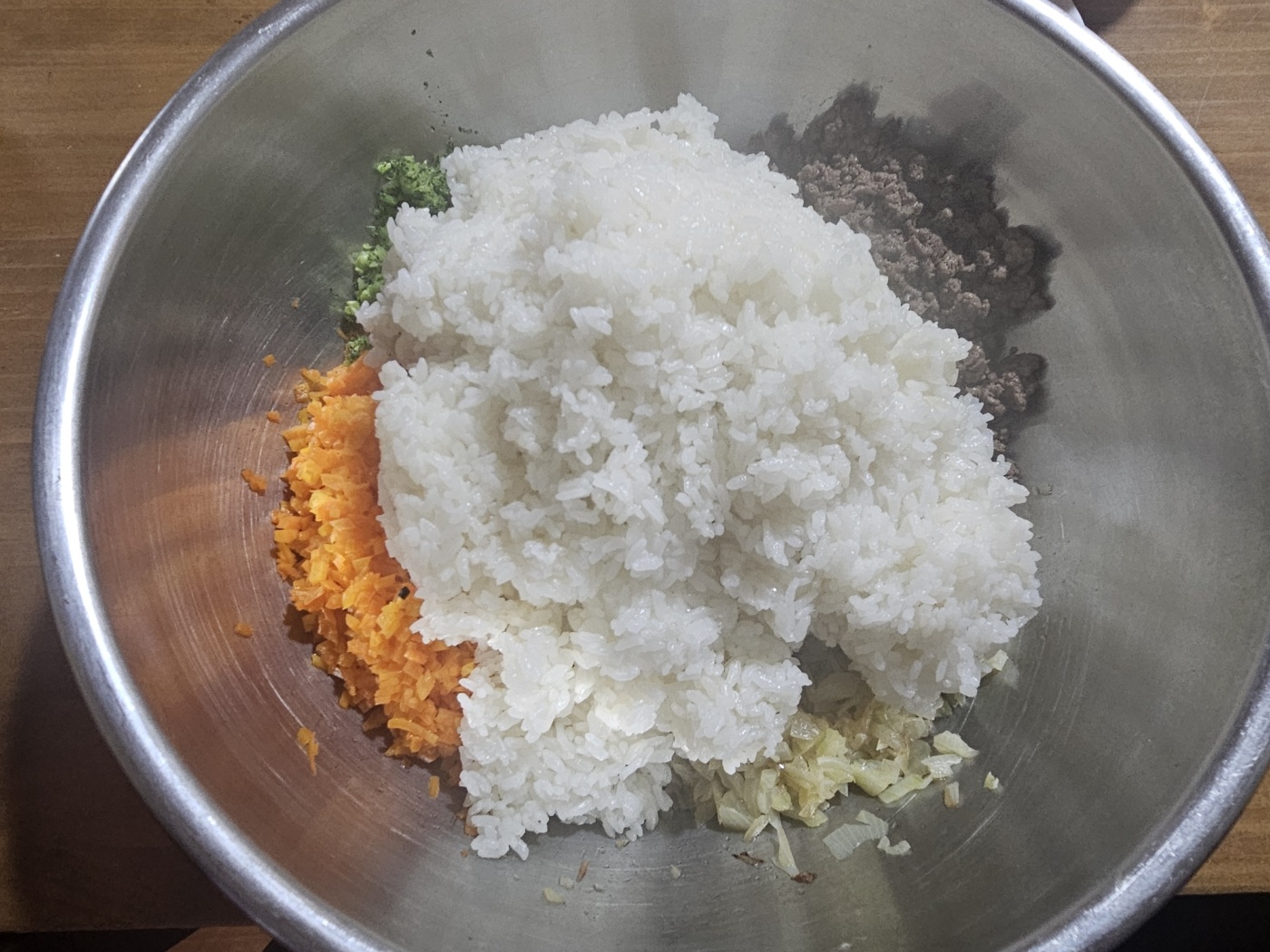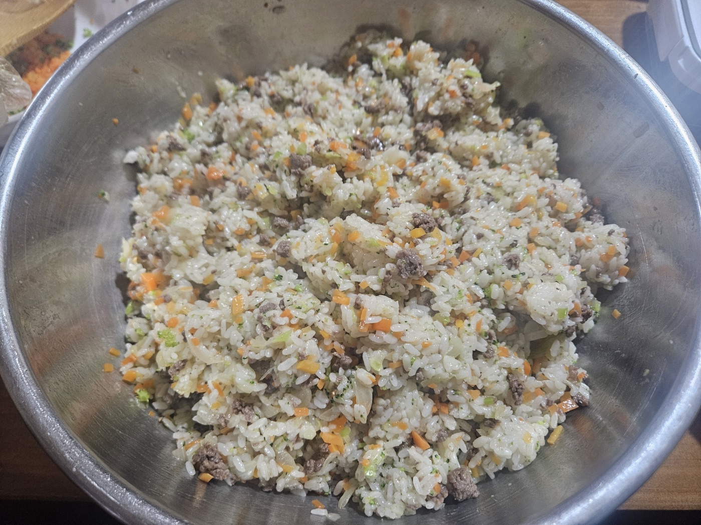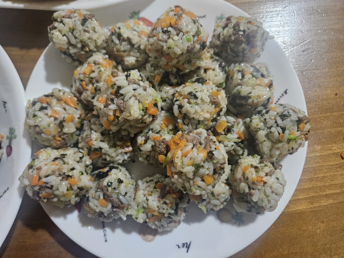2살 배기는 소고기를 너무 좋아해서 소고기를 주먹밥에도 들어갔지만