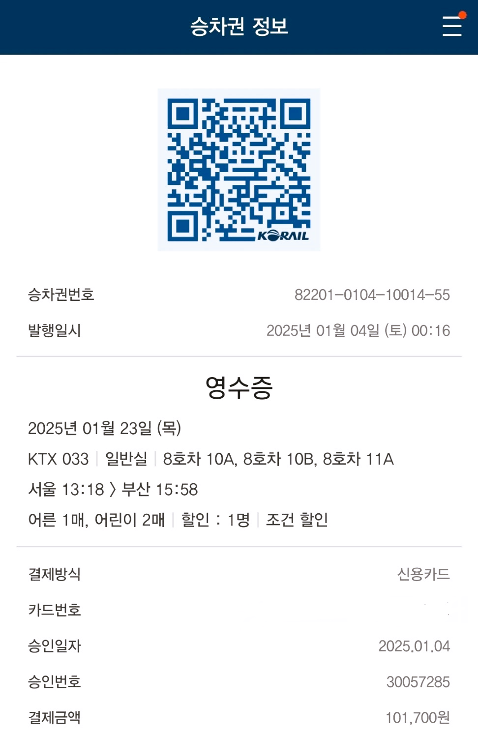다둥이로 끊으니 그나마 저렴한 열차비....