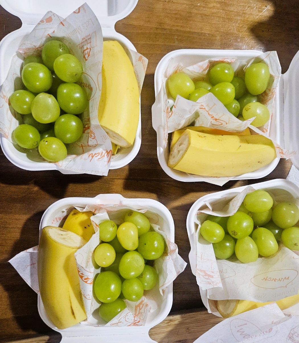 이제 남은 건 과일과 에어프라이에서 구운 치킨....